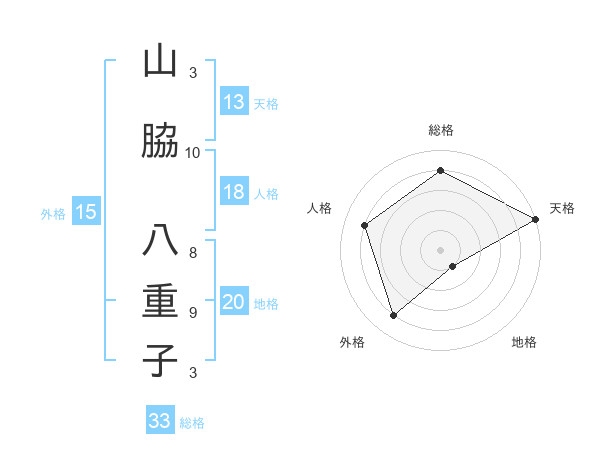 山脇 八重子さんの総格は33画の4点!