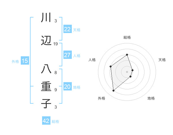 川辺 八重子さんを姓名の画数から五運を鑑定