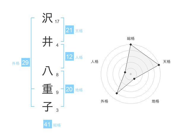 沢井 八重子さんを姓名の画数から五運を鑑定