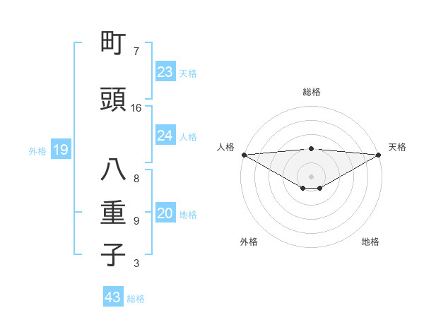 町頭 八重子さんを姓名の画数から五運を鑑定