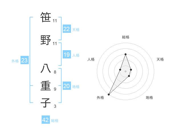 笹野 八重子さんを姓名の画数から五運を鑑定