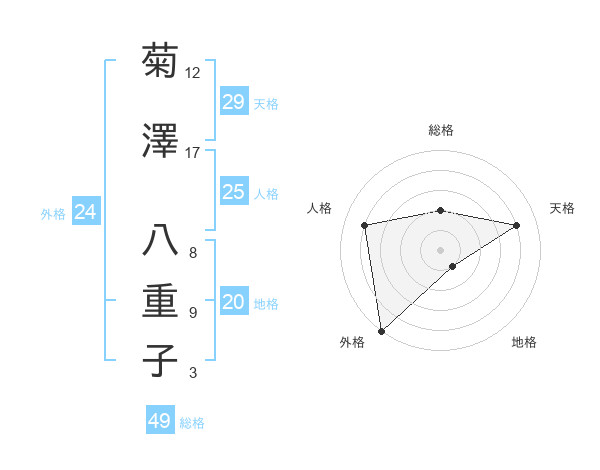 菊澤 八重子さんを姓名の画数から五運を鑑定