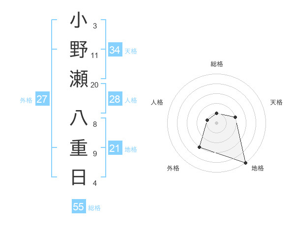 小野瀬 八重日さんを姓名の画数から五運を鑑定
