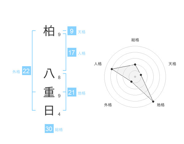 柏 八重日さんの総格は30画の2点!