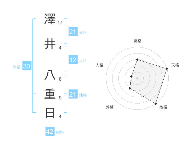 澤井 八重日さんを姓名の画数から五運を鑑定
