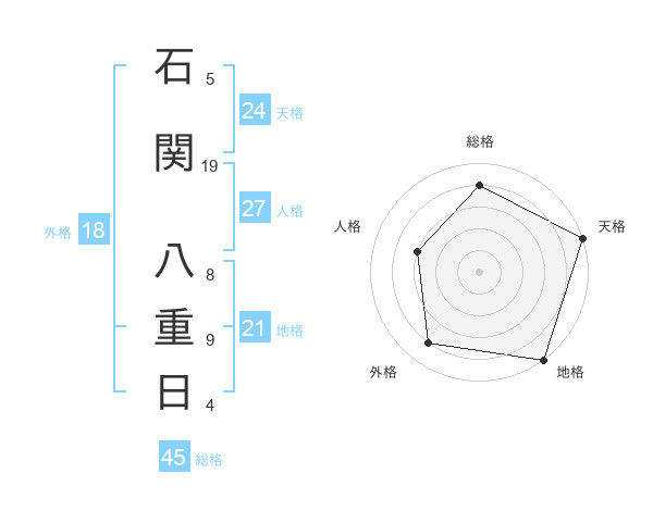 石関 八重日さんの総格は45画の4点!