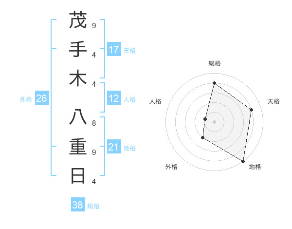 茂手木 八重日さんを姓名の画数から五運を鑑定