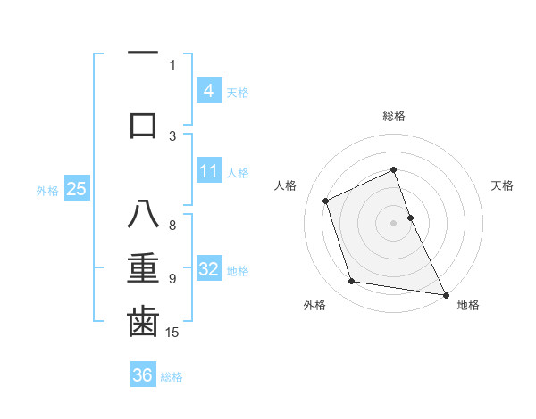 一口 八重歯さんの総格は36画の3点!