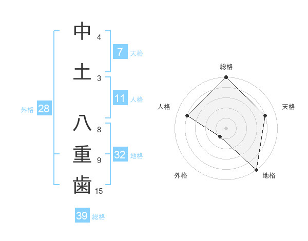 中土 八重歯さんを姓名の画数から五運を鑑定