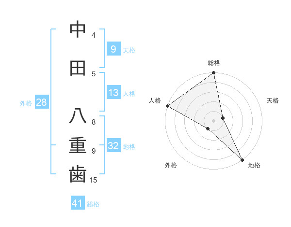 中田 八重歯さんを姓名の画数から五運を鑑定