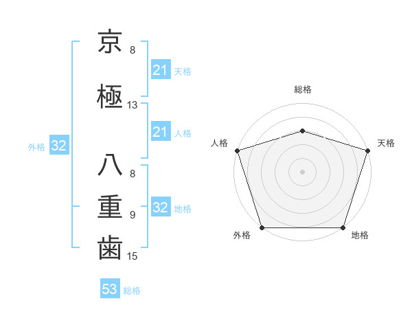 京極 八重歯さんを姓名の画数から五運を鑑定