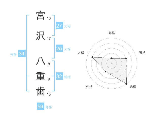 宮沢 八重歯さんの総格は59画の1点!