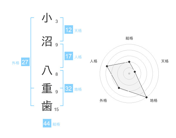 小沼 八重歯さんの天格は12画の1点!