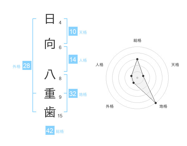 日向 八重歯さんを姓名の画数から五運を鑑定