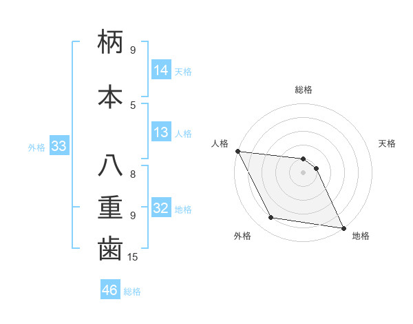 柄本 八重歯さんを姓名の画数から五運を鑑定