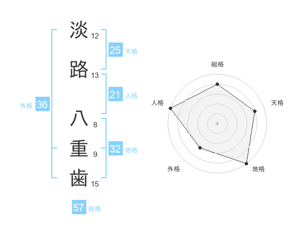 淡路 八重歯さんを姓名の画数から五運を鑑定