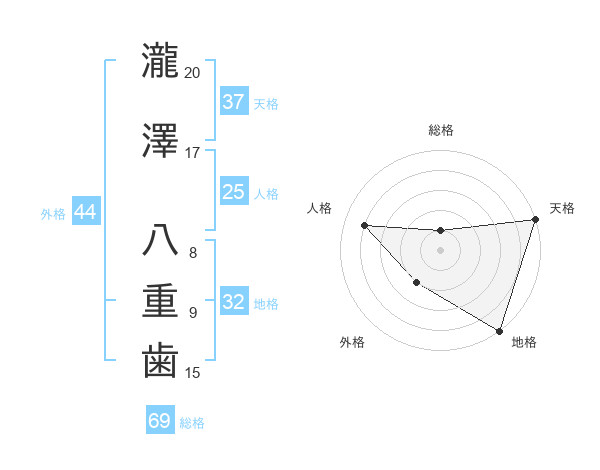 瀧澤 八重歯さんの天格は37画の5点!