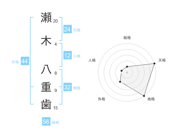 瀬木 八重歯さんを姓名の画数から五運を鑑定