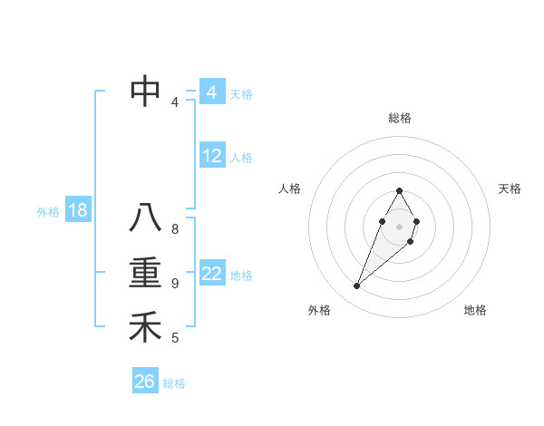 中 八重禾さんの総格は26画の2点!