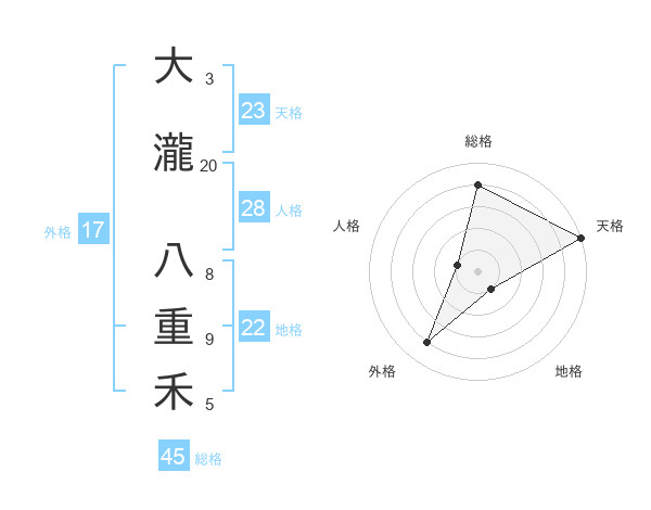 大瀧 八重禾さんを姓名の画数から五運を鑑定