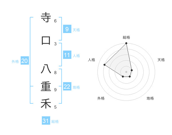 寺口 八重禾さんを姓名の画数から五運を鑑定