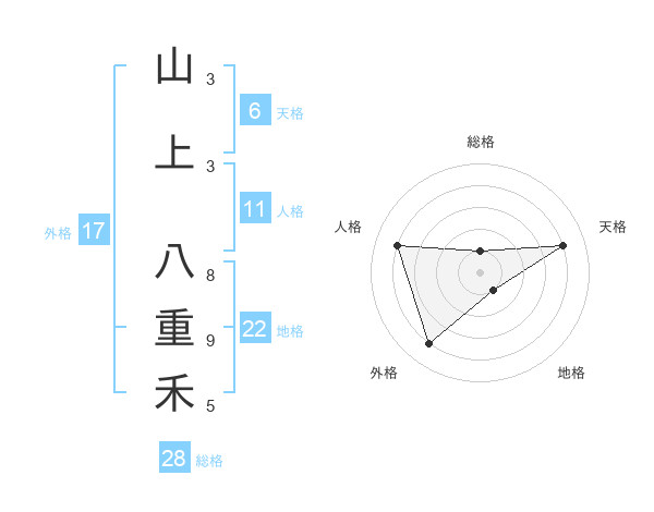 山上 八重禾さんを姓名の画数から五運を鑑定