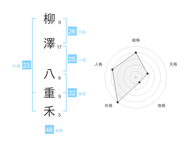 柳澤 八重禾さんの総格は48画の4点!