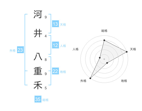 河井 八重禾さんを姓名の画数から五運を鑑定