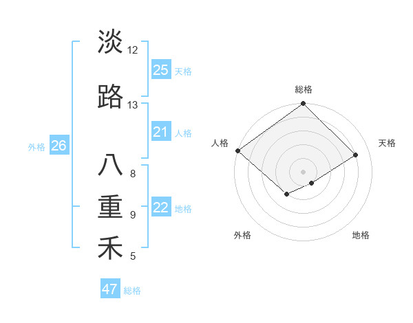 淡路 八重禾さんの総格は47画の5点!