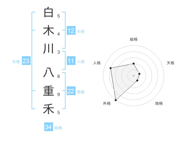 白木川 八重禾さんの外格は23画の5点!