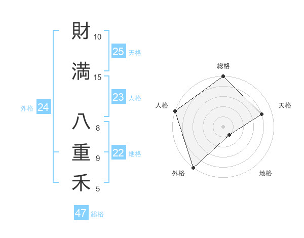 財満 八重禾さんを姓名の画数から五運を鑑定