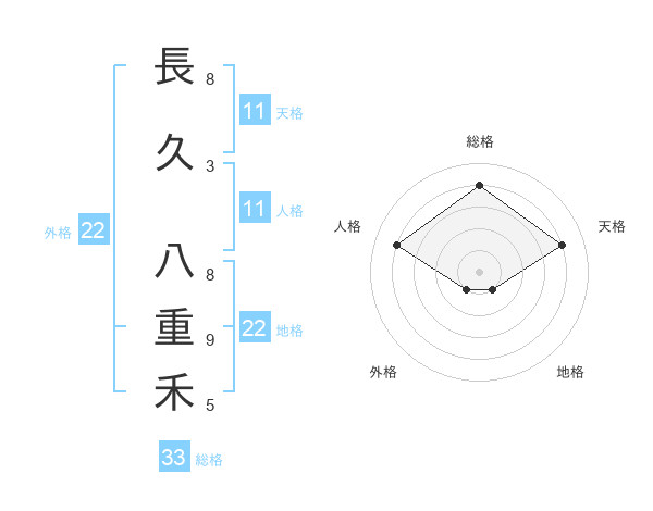 長久 八重禾さんを姓名の画数から五運を鑑定