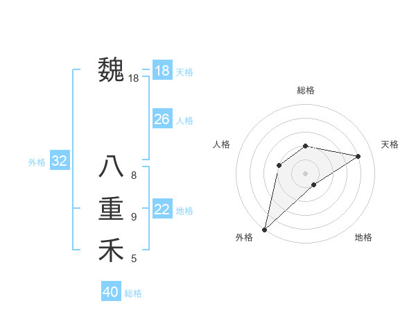 魏 八重禾さんを姓名の画数から五運を鑑定