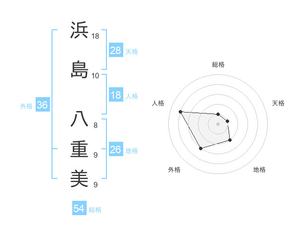 浜島 八重美さんを姓名の画数から五運を鑑定