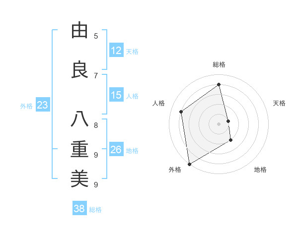 由良 八重美さんの総格は38画の4点!