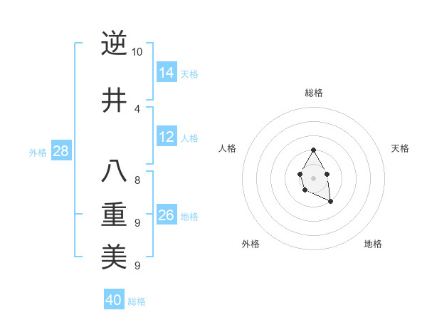 逆井 八重美さんの総格は40画の2点!