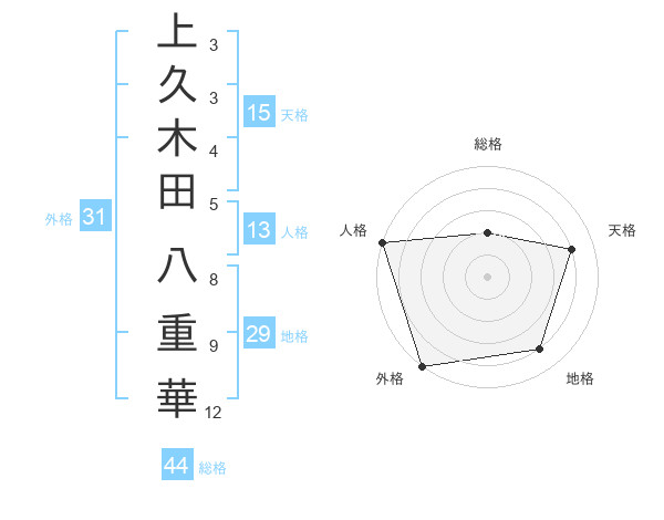 上久木田 八重華さんを姓名の画数から五運を鑑定