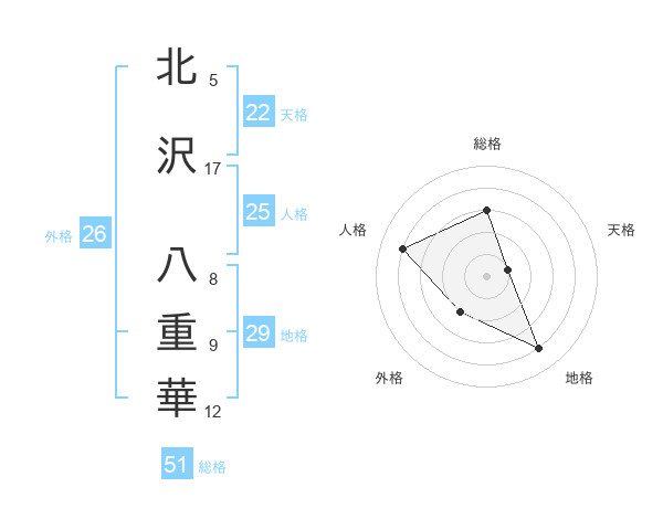 北沢 八重華さんを姓名の画数から五運を鑑定