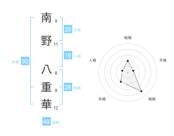 南野 八重華さんの総格は49画の2点!