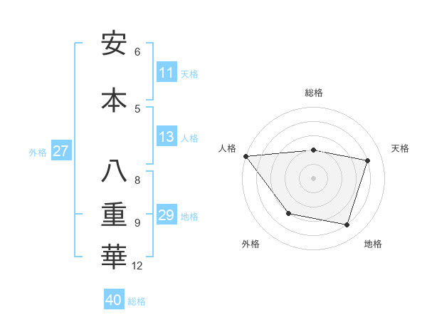 安本 八重華さんの総格は40画の2点!