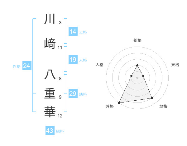 川﨑 八重華さんを姓名の画数から五運を鑑定