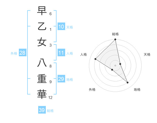 早乙女 八重華さんを姓名の画数から五運を鑑定