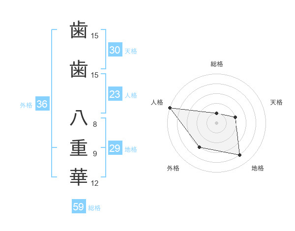 歯歯 八重華さんを姓名の画数から五運を鑑定