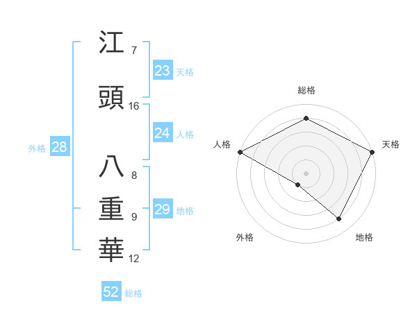 江頭 八重華さんを姓名の画数から五運を鑑定