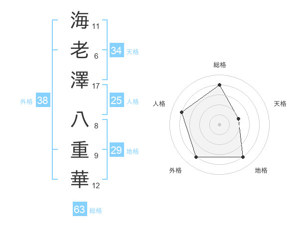 海老澤 八重華さんを姓名の画数から五運を鑑定