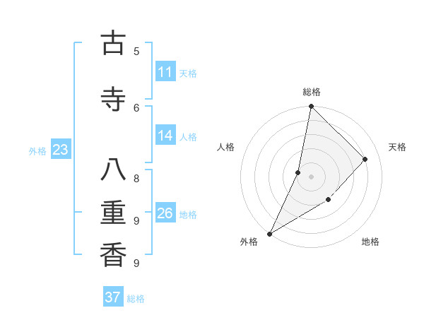古寺 八重香さんを姓名の画数から五運を鑑定