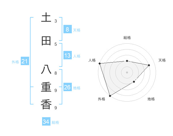 占い結果は姓名判断である以上、良い場合も悪い場合もありますが、決してお名前を誹謗中傷するものでなく、画数の自動計算によって得られたものです。また、本サイトの検索によって得られた鑑定結果で、第三者を誹謗中傷したり名誉を棄損するような行為を禁じます。