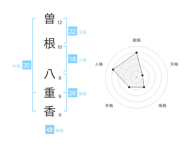 曽根 八重香さんを姓名の画数から五運を鑑定