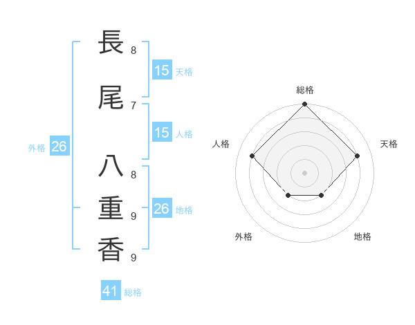 長尾 八重香さんを姓名の画数から五運を鑑定