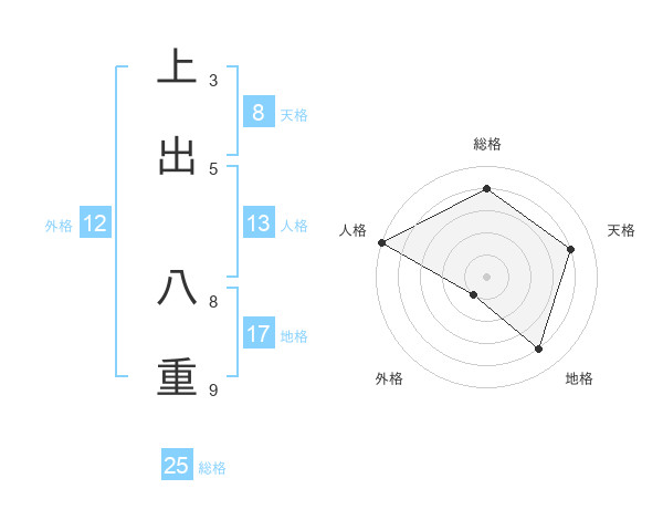 上出 八重さんの総格は25画の4点!